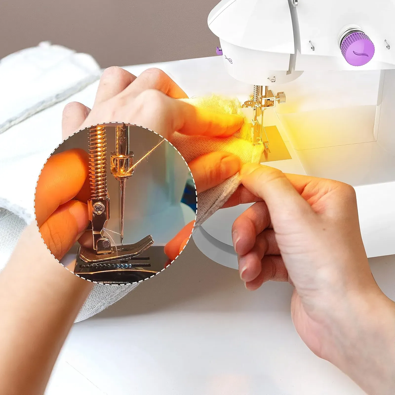 With an efficient motor and stable stitch design, this mini sewing machine easily handles multiple layers of thick fabrics, such as denim, cotton, or layered materials. Even when sewing through heavier or stacked fabrics, stitches remain even and consistent, making every project smooth and reliable for professional-quality results.